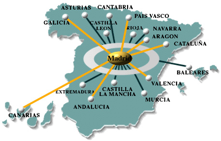 A cada uno de estos nodos y de forma serializada, se conectan los centros afiliados de cada comunidad autónoma, mediante su línea de acceso al nodo de RedIRIS. Excepcionalmente, por razones de concentración de terceros centros, el acceso local al nodo se hace mediante ethernet.