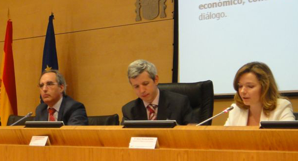 Tomás de Miguel y Alberto Perez, director y subdirector de RedIRIS, han participado en la "Jornada sobre diálogo competitivo: la experiencia RedIRIS-NOVA", organizada por la entidad pública empresarial red.es y la Abogacía General del Estado del Ministerio de Justicia, que se celebró el día 10 de mayo en Madrid, en el Salón de Actos de la Secretaría de Estado de Telecomunicaciones y para la Sociedad de la Información. La jornada estuvo presidida por Sebastián Muriel, director general de red.es.