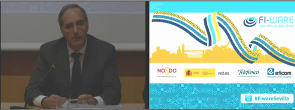 Adolfo Borrero, Vicepresidente de ETICOM, recordó durante su intervención que “las Smart Cities desempeñan un papel fundamental en el Horizonte 2020, y la plataforma FI-WARE abre grandes posibilidades a empresas que trabajan en ese área”. “Andalucía está afianzándose en una posición de liderazgo en el desarrollo de tecnologías orientadas a las Smart Cities; con el apoyo de la plataforma FI-WARE vamos a conseguir establecer estándares europeos” –puntualizó.