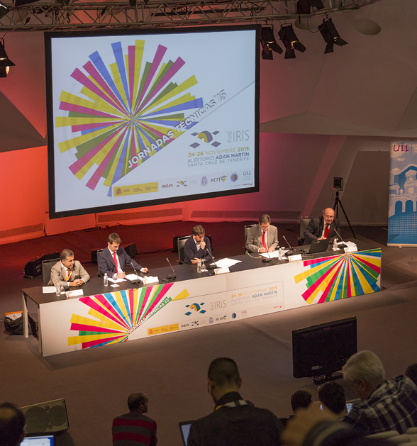 El Auditorio de Tenerife Adán Martín, acoge desde hoy y hasta el jueves, 26 de noviembre, las Jornadas Técnicas de RedIRIS 2015. En esta edición, que se organiza con la colaboración del Cabildo de Tenerife a través del Parque Científico y Tecnológico, la Universidad de la Laguna y el Instituto de Astrofísica de Canarias, se dan cita 350 expertos y responsables de red y servicios informáticos de las instituciones afiliadas a RedIRIS, principalmente universidades, centros de investigación y redes autonómicas, con el fin de intercambiar información y experiencias.