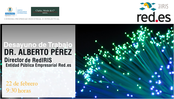 Alberto Pérez, director de RedIRIS, participará el 22 de febrero en un Desayuno-Coloquio que se realiza en el marco de la Cátedra UPM-Clarke, Modet & Cº España, en la sede de esta compañía (C/ Suero de Quiñones 34-36, 28002 Madrid).