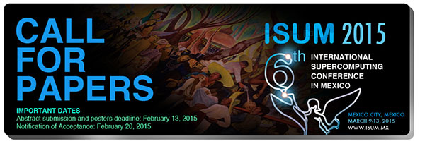 El Comité Organizador del 6° Congreso Internacional de Supercómputo en México (ISUM 2015) invita a la comunidad científica, académica, al sector empresarial y personas interesadas, a presentar los resultados de investigaciones en temas relacionados con supercómputo para el ISUM 2015.