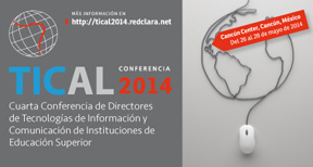 RedCLARA, con el apoyo de RENATA, invita a los gestores de TIC de las universidades latinoamericanas a presentar trabajos para participar en la "Tercera Conferencia de Directores de Tecnologías de Información y Comunicación de Instituciones de Educación Superior, TICAL 2013", evento que se desarrollará en Cartagena de Indias, Colombia, los días 8 y 9 de julio de 2013.