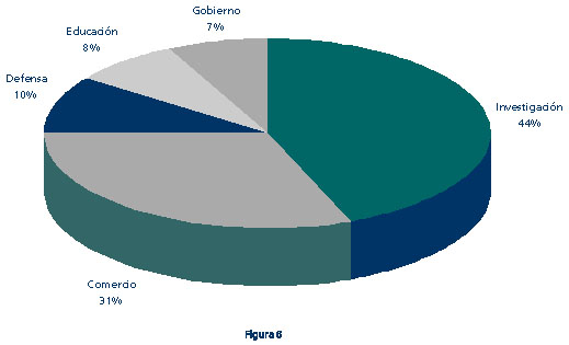 Otro fenómeno que se viene produciendo en los últimos años ha sido el de la universalización de la Internet tanto en el aspecto geográfico como en el del perfil de sus usuarios. Cada vez son más los países que disponen de plena conectividad dentro de Internet (ver figura 4), lo que hace que la Internet sea un fenómeno de alcance mundial, como se aprecia en el mapa de conectividad internacional de la figura 5. En cuanto al tipo de usuarios, la Internet hace ya bastante tiempo que dejó de ser un reducto de científicos e investigadores; cada vez es mayor el porcentaje de usuarios del ámbito empresarial y comercial (figura 6).