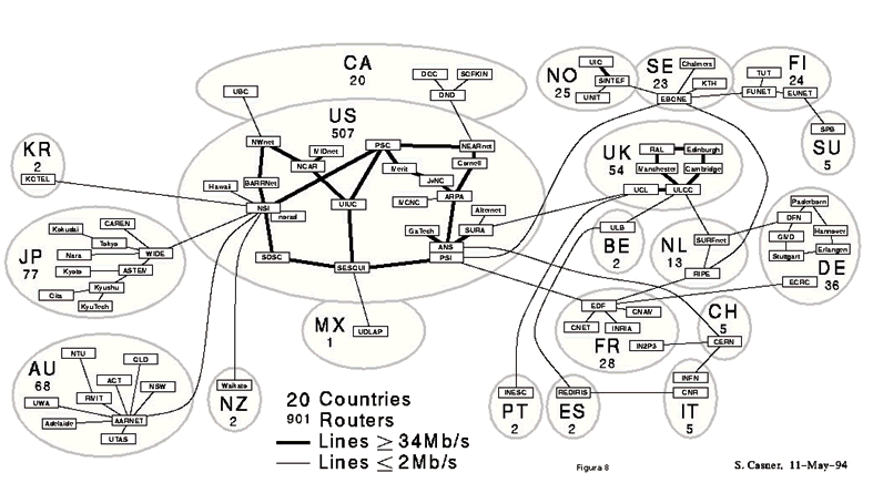 - Mayo 1994: Más de 20.000 máquinas conectadas Más de 100 organizaciones con plena conectividad.