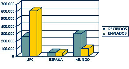 - Estadísticas de uso del correo electrónico: si hay algún servicio realmente extendido entre la comunidad de la UPC, éste es el correo electrónico. Actualmente se cubren las plataformas EAN/VMS, EAN/UNIX, SMTP/UNIX y PEGASUS/Novell. Durante el primer semestre de 1995, la estafeta central de correo de la UPC manejó una media mensual de 110.000 mensajes.