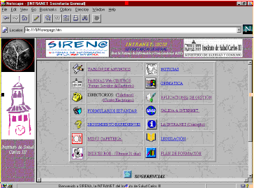 La Intranet del Instituto está en explotación desde Junio de 1.996. El origen de este sistema de información proviene de un conjunto de páginas HTML ubicadas en uno de los servidores de archivos. Desde un navegador INTERNET estándar los usuarios podían acceder a estas pantallas para realizar una serie de operaciones y consultar información interna. En un principio su ámbito estaba limitado a la Secretaría General. Desde entonces, los objetivos han sido más ambiciosos A partir de comienzos de 1997 la Intranet recibe un nombre (SIRENA, por Sistemas de Información en la REd interNA) y se extiende a todo el Instituto Entre las principales características que se pueden destacar de este sistema se encuentran: