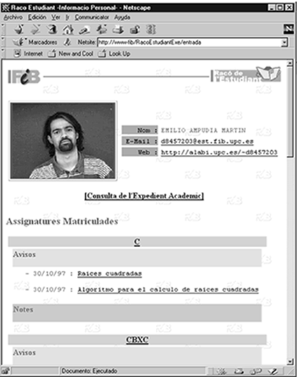 Toda la información accesible desde el "Racó de l'Estudiant" (excepto la fotografía) puede visualizarse desde clientes WEB no gráficos como LYNX, para facilitar su consulta desde los terminales VT instalados en las aulas informáticas.