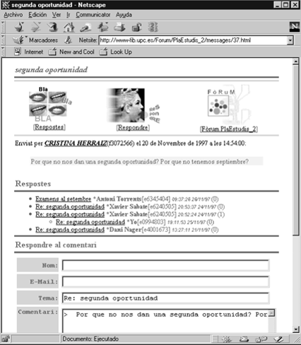 - Foros de discusión de asignaturas (en los que únicamente pueden participar los estudiantes y profesores de la asignatura).