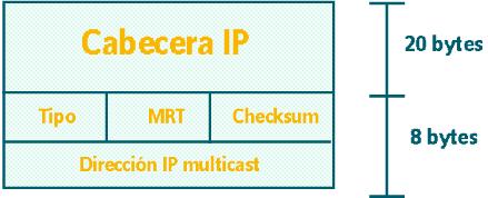 La primera implementación del IGMP fue publicada por Steve Deering en el RFC 1112 que hemos mencionado antes, a mediados de 1989. Este fue remplazado, en noviembre de 1997, por el RFC 2236 que define la versión 2 del protocolo (IGMPv2), y en la actualidad el grupo de trabajo idmr (Inter-Domain Multicast Routing) del IETF está trabajando en una nueva versión del mismo (versión 3).Del mismo modo que el ICMP (Internet Control Message Protocol )(RFC 792), el IGMP (Internet Group Membership Protocol) es una parte integral del IP. Los mensajes IGMP son transmitidos en datagramas IP y tienen un tamaño fijo de 8 bytes. La siguiente figura muestra el formato de los mensajes IGMP.
