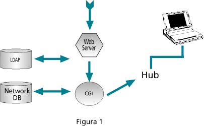 La CGI será la que se encargue de pedir la dirección Ethernet que se desea activar, la roseta sobre la cual se va a actuar y el intervalo de tiempo. Guardaremos así un log de las personas autorizadas en cualquier momento sobre ese punto de red. Gráficamente el sistema podría verse como se muestra en la figura 1.