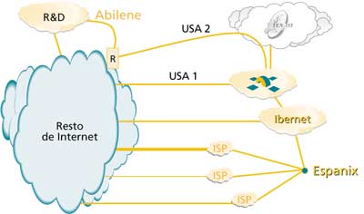 Desde el 8 de octubre de 1999 el router de DANTE en Nueva York se conecta con Abilene, una de las redes de Internet2, mediante una línea de 45 Mbps, lo que abre la posibilidad de que grupos de investigación españoles participen en experimentación de nuevas a aplicaciones o servicios con sus colegas de las universidades norteamericanas.