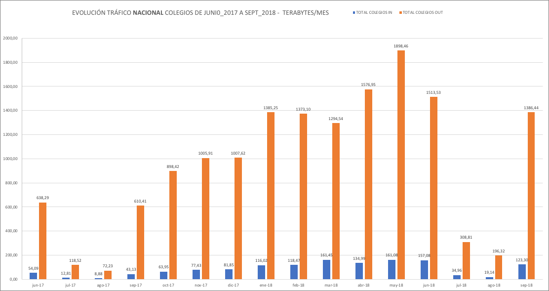 En la gráfica (fig.2) que aparece a continuación se muestra como la evolución del tráfico generado por las escuelas casi triplica el volumen de datos cursados en un año: