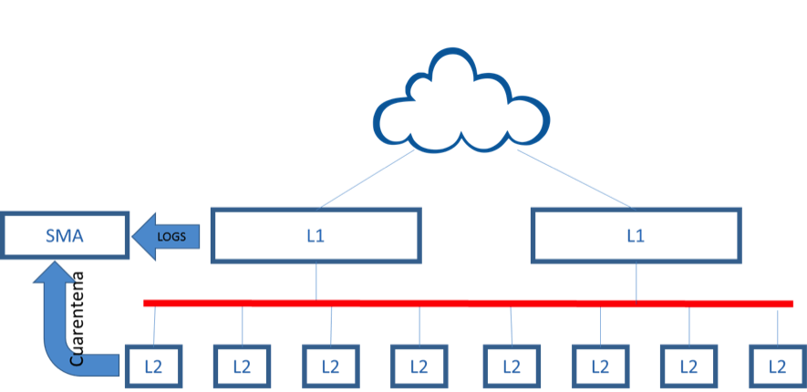 · Logs y cuarentena. Existe un sistema SMA (Security Management Appliance) que almacena los Logs del L1 y la cuarentena de todo el servicio.