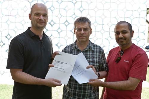 El pasado 15 de junio de 2011, en las oficinas de la Fundación para la Computación Científica Nacional, FCCN, en Lisboa, la red alemana de investigación y educación, DFN (representada por Torsten Kersting - a la izquierda de la imagen) y RedIRIS (representada por Ajay Daryanani - derecha de la imagen), presentaron las primeras copias firmadas de la Declaración eduGAIN al equipo de operaciones del servicio eduGAIN, desarrollado dentro del proyecto GÉANT (representado por Tomasz Wolniewicz de PSNC / PIONIER).