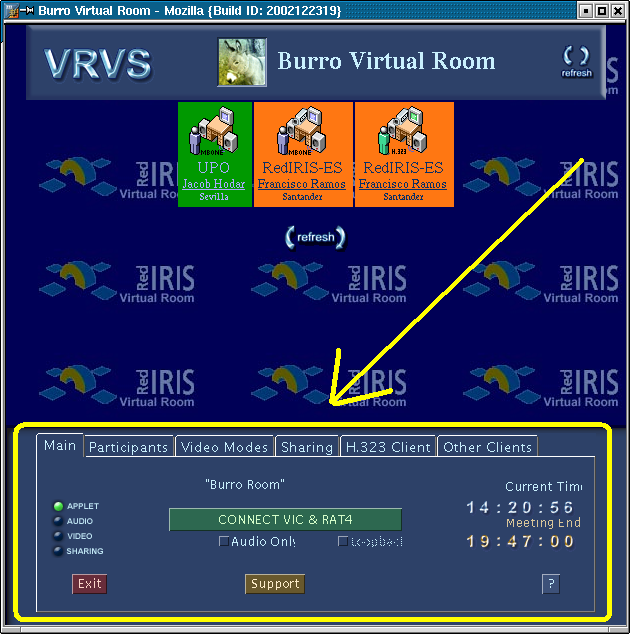 conectados al servidor de la sala "APPLET" o cuando estamos conectados con vídeo, audio, o compartiendo nuestro