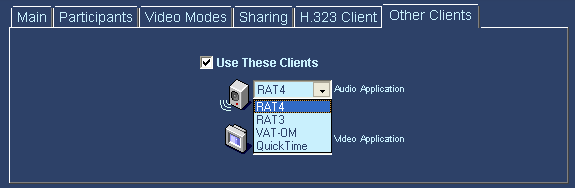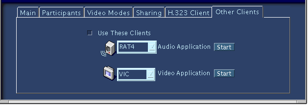 Para conectarme usando los clientes de MBone VIC (para el vídeo) y RAT (para el audio), lo primero que tenemos que hacer es seleccionar el subpanel "Other Clients" (otros clientes) y comprobar que tenemos el cuadradito de "Use These Clients" (Utilizar Estos Clientes) seleccionado.