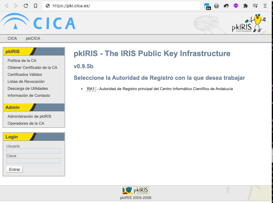 pkIRIS es un software desarrollado en la comunidad IRIS para la gestión de una PKI. Está basado en software libre (OpenLDAP, PHP, OpenSSL).