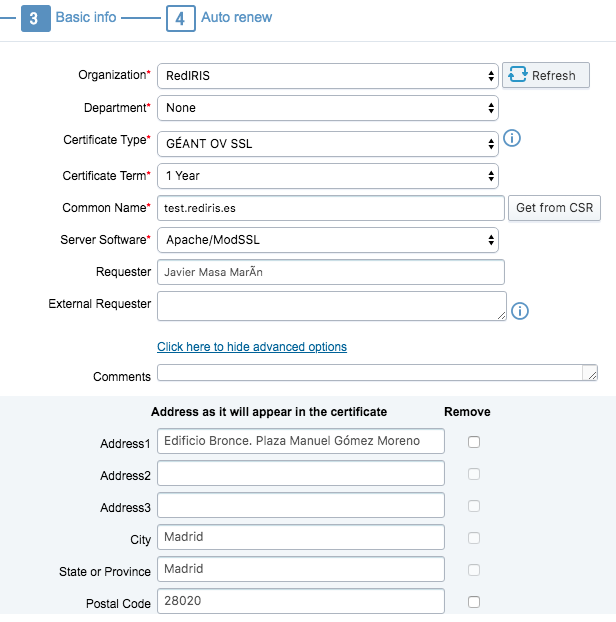 Si tiene la intención de ordenarlos desde el portal SCM, comuníquese con RedIRIS abriendo un ticket, para que activemos el perfil apropiado y hay que considerar lo siguiente:
