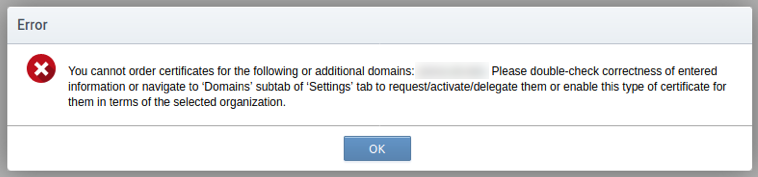 - No añadir dominios "*.dominio.es" ya que solo es necesario añadir "dominio.es". Según lo que Sectigo escribió a uno de nuestros usuarios: