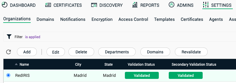 RedIRIS, al igual que el resto de NRENs que participan en TCS, dispone de una instancia del portal Sectigo Certiticate Manager en